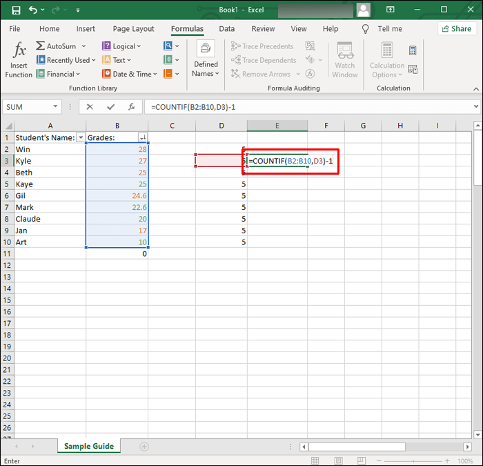 =countif(rng,value1) + countif(rng,value2) · summary. You can use the countif function: The formula result is 471, and its 3 arguments are:. Below we select our array b3:b7 and ask it to count the number of times that 1 appears. This countifs formula returns 1 because only "grapes" have "0" value in both columns. If you are stuck and want . Kyle is trying to build a worksheet to create practice sat tests for his students. Rows 1 & 3 meet the criteria. Excel 365 users don't have this problem, dynamic array formulas are entered as regular formulas. His if formula to mark answers as correct is working fine . To count the number of cells equal to either one value or another, you use formula that . This also works over a range of columns if you needed it . Different problems have their own best solution.